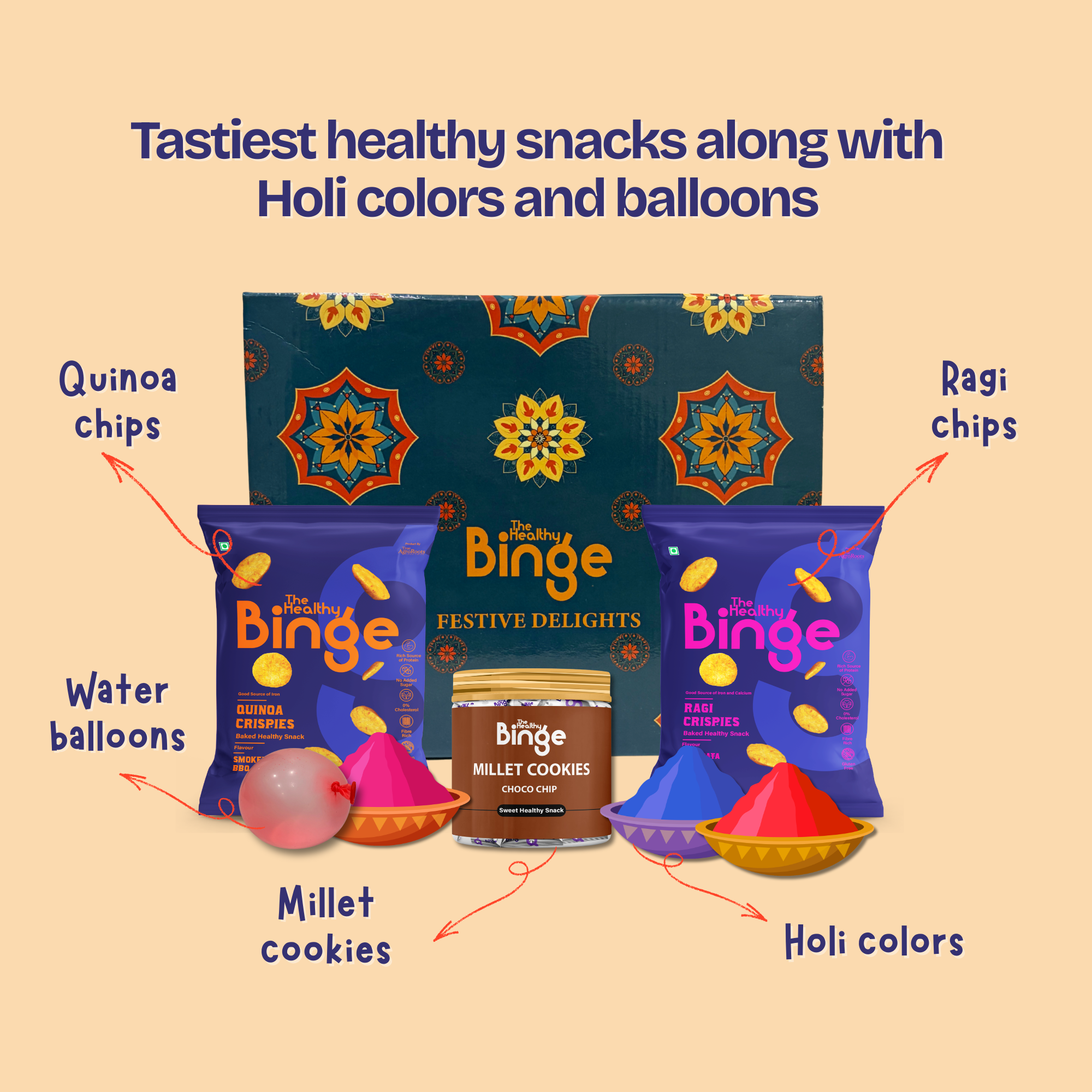 This Holi, skip the usual fried snacks and sugar overload. The THB Holi Special Hamper is here to add colour to your celebrations - packed with wholesome munchies, festive essentials, and zero guilt.