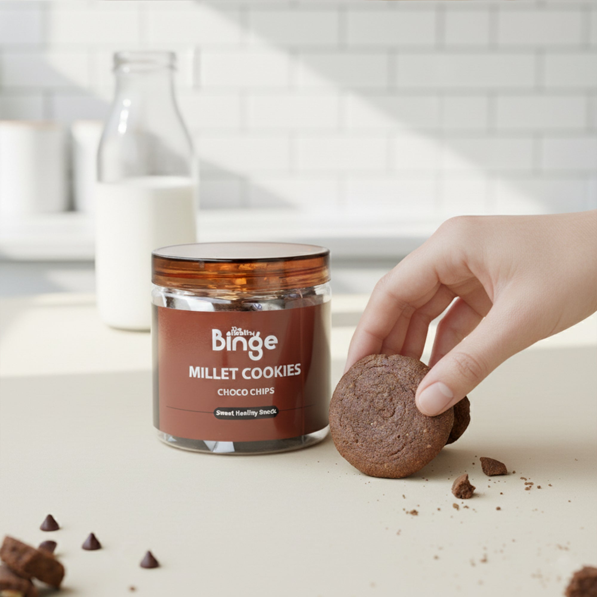 Introducing our delectable Millet Choco Cookies - a scrumptious treat crafted with care. Dive into the luscious chocolate goodness paired with the goodness of millets for a snack you'll crave again and again.