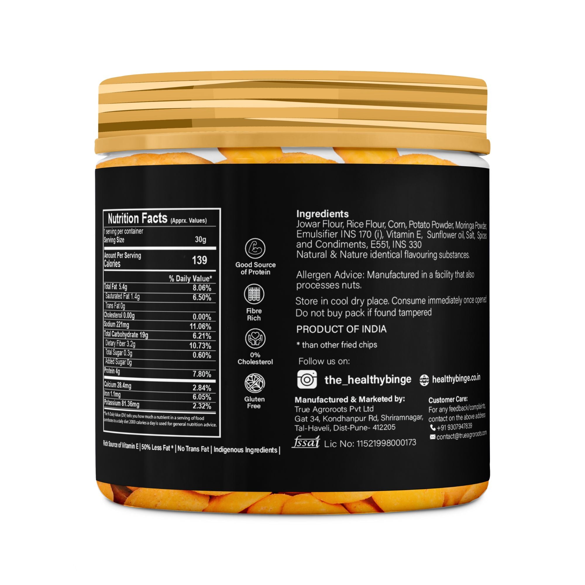 Blended with ultra-flavoursome spices like fennel, bay leaves, peppercorns, cloves, cardamom, cumin, coriander seeds, cinnamon and red chili powder, the Indian Masala has long since been a household favourite. Now enjoy this tangy seasoning with our very own Moringa Jowar crispies!
